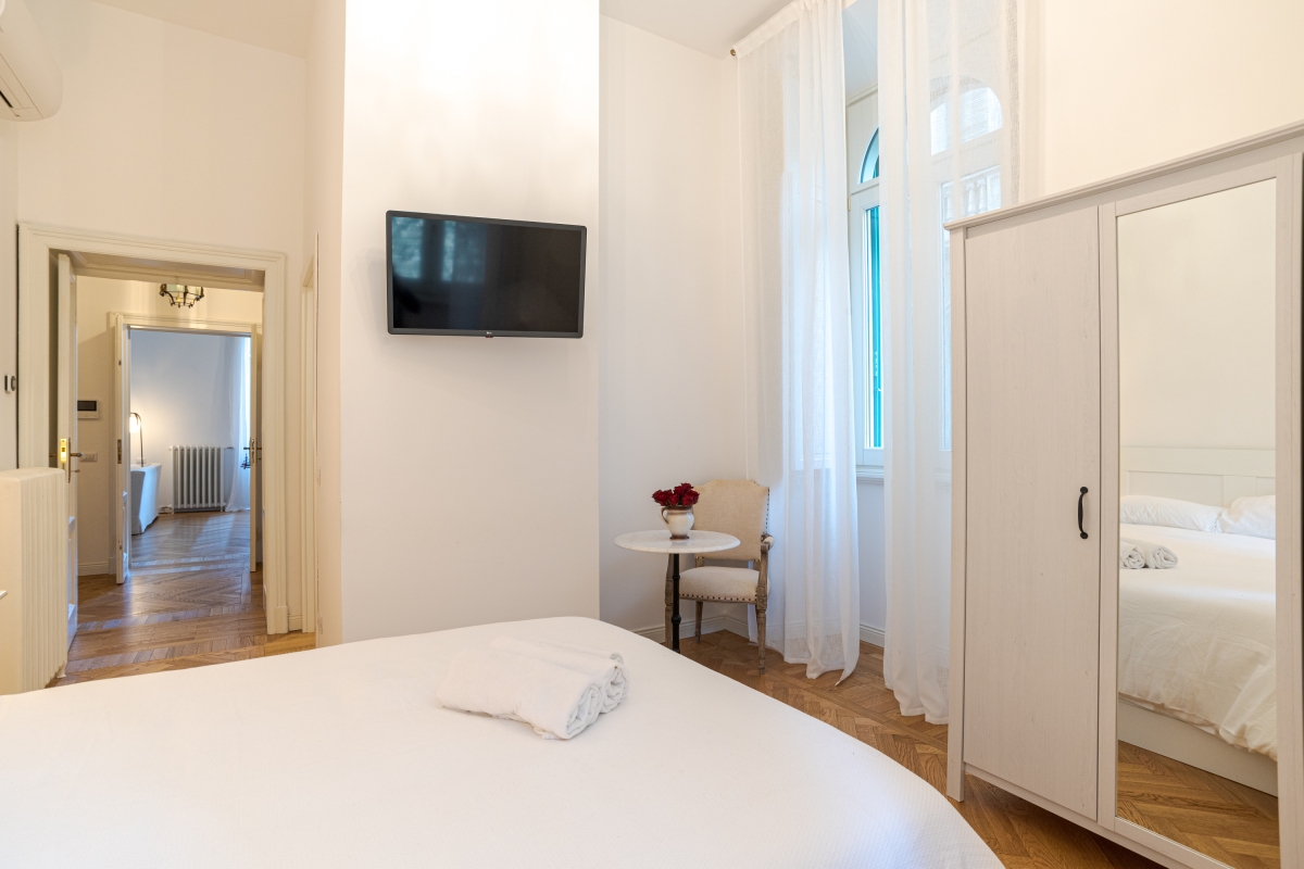 The elegant residence is in a quiet, but central location just 12 minutes walk from the shores of Lake Como. It is well-connected to facilitate a carefree stay and has restaurants, a supermarket and the nearest bus stop (Monti) located just next door. Guests will find the Como city ferry terminal at a 20-minute walk or 5-minute drive from here, as well as lakeside hiking with stunning Lake Como views and sculptures and monuments dotted along the way within a 15-minute walk.