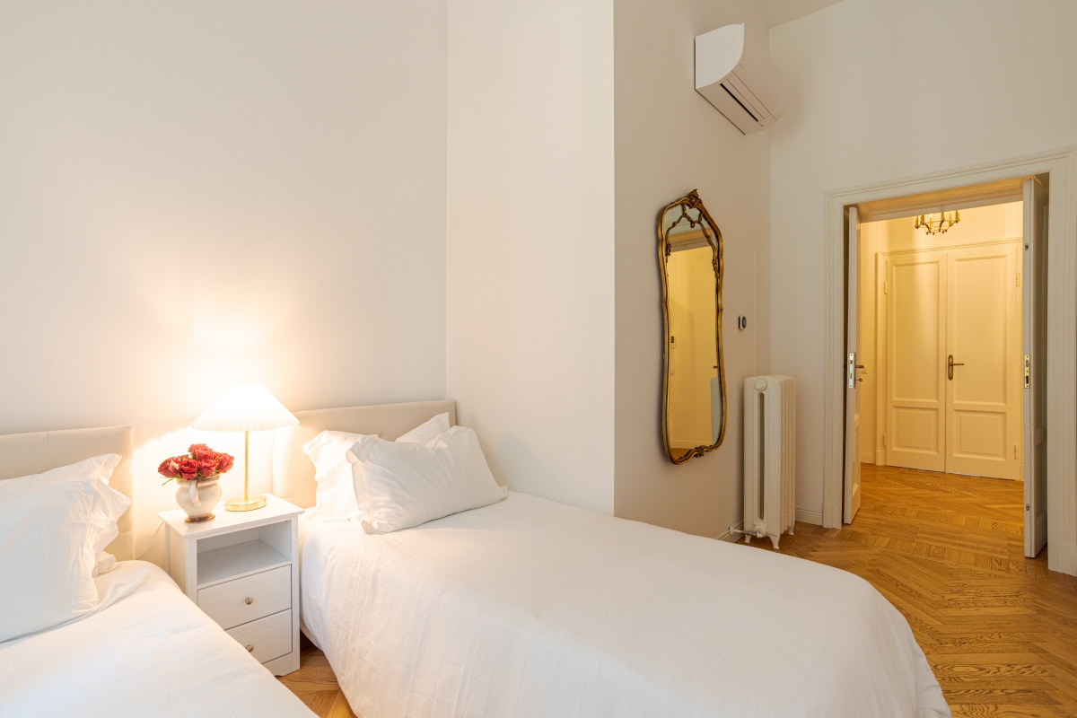 Bedroom 4: A comfy bedroom with twin-joinable beds and a wardrobe.