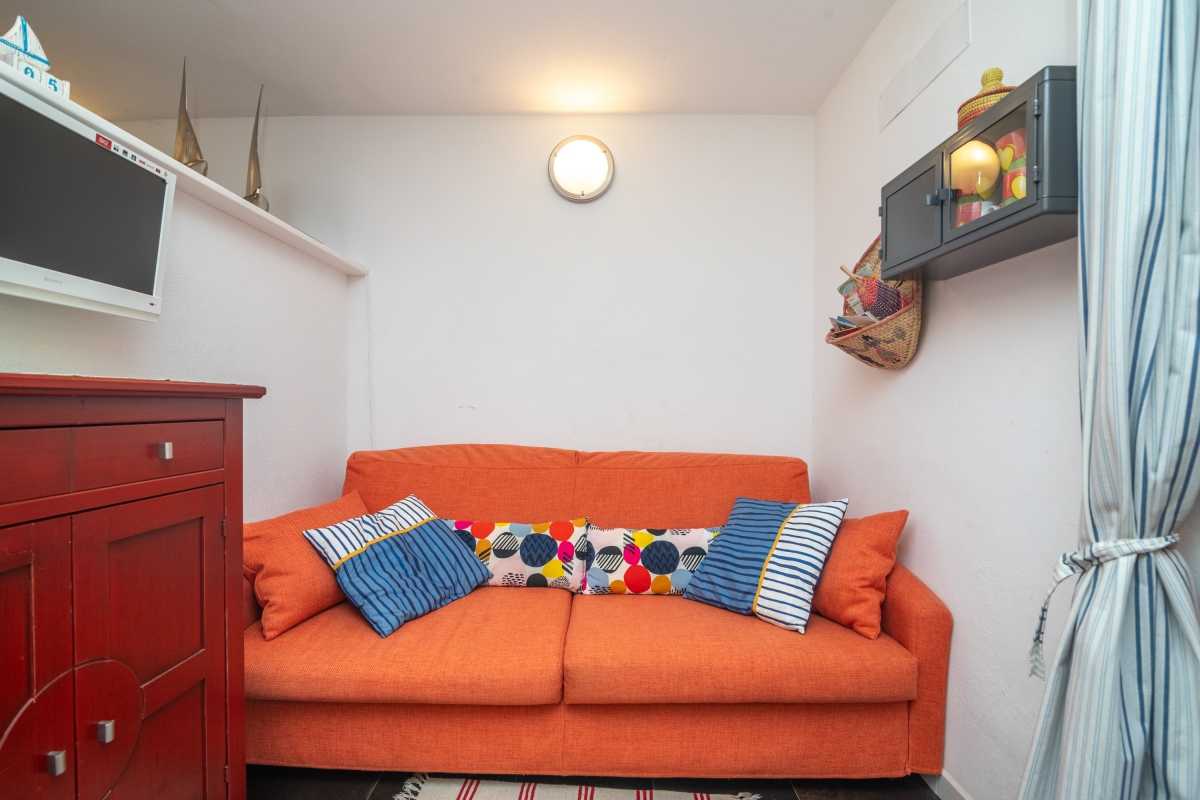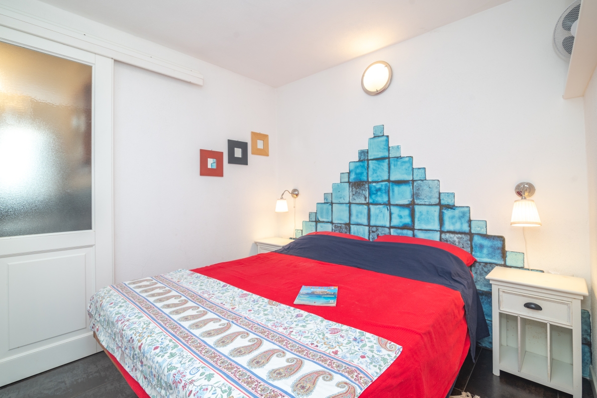 Bedroom: The cosy bedroom, just off the living space, has a double bed, a large wardrobe and double glass doors leading directly to the terrace.