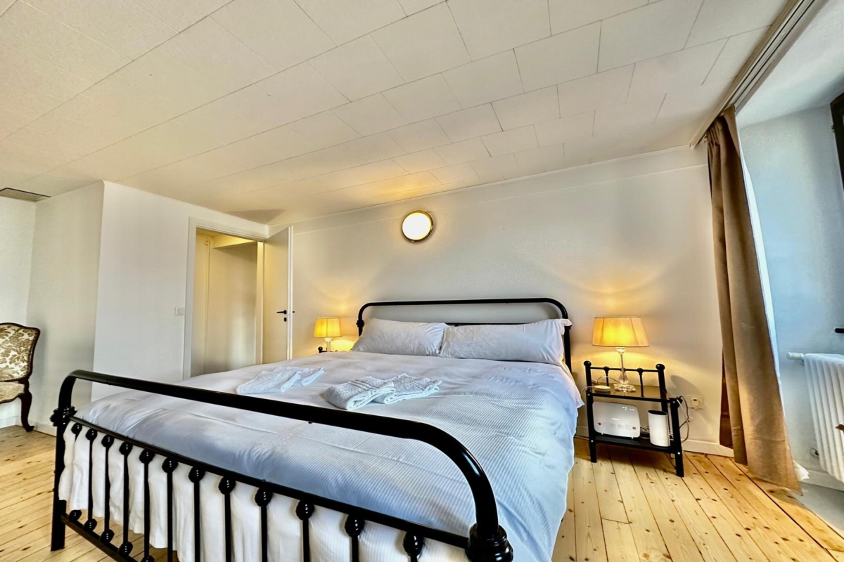Bedroom 1: A bright, spacious bedroom with a king-size double bed and a wardrobe.
