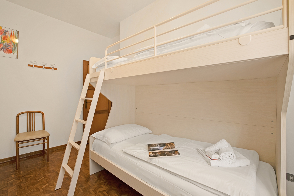 Bedroom 2: A comfy triple bedroom with bunk beds, a single bed and a wardrobe.