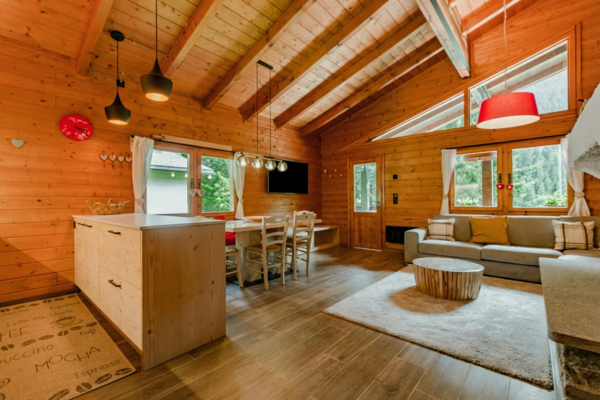 Outside, the two-bedroom chalet offers a stunning setting complemented by a private fenced garden with a sandpit for children to enjoy and suggestive open-air dining on the exclusive terrace for a memorable time. Laundry and ironing facilities are available along with private parking for total comfort and convenience. The retreat is also ideal for remote work, with facilities like high-speed Wi-Fi and a laptop-friendly workplace at your disposal.