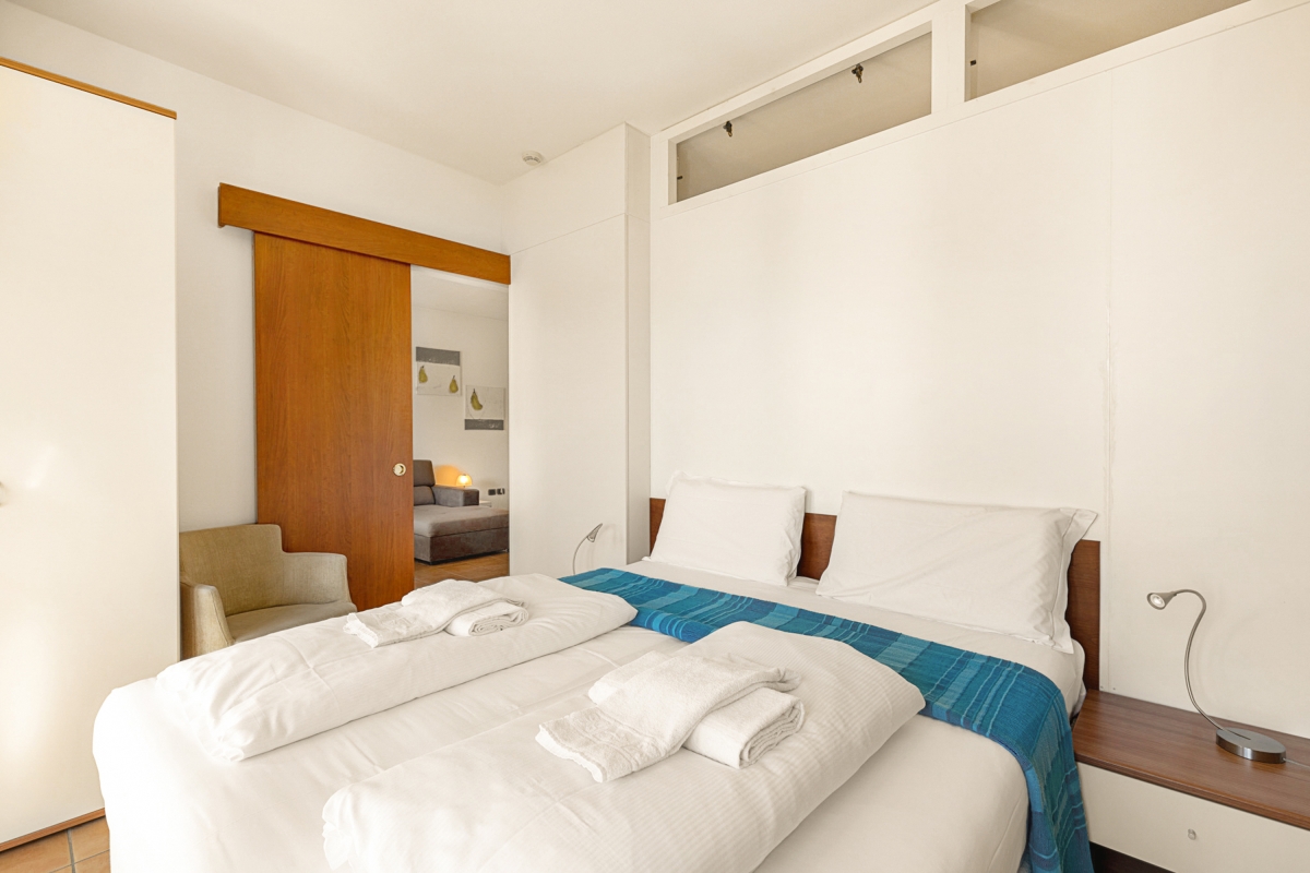 A dining area and modern kitchenette are ideal for preparing simple meals during your stay. The sleeping accommodation includes a master bedroom featuring a double bed (which can be separated into two single beds if required) and the living room sofa that converts into a double bed for 2. A full bathroom with a bath, bidet and WC completes the layout of the apartment.