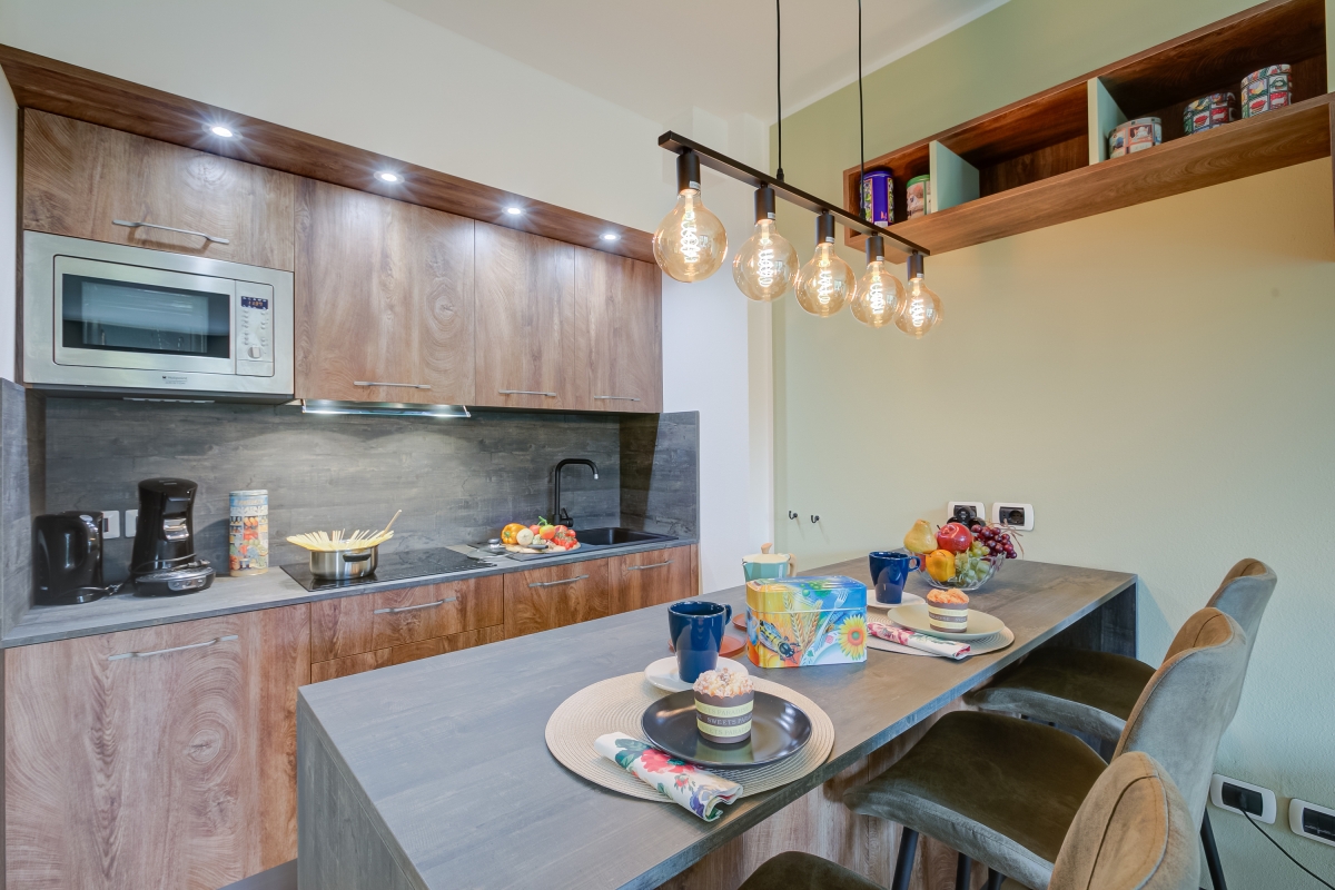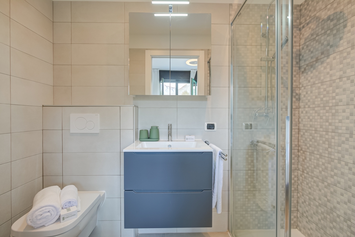 The apartment is situated in the main Palazzo building of Porto Letizia located in Porlezza, on the northeastern shore of Lake Lugano. The Palazzo enjoys an on-site reception area with Wi-Fi, a stylish café bar, contemporary the restaurant Osteria del Porto and more. The family-friendly resort also features a shared public, pet-friendly park with footpaths, a communal beach with SUP and watersport hire, two children's play areas and a beach with a lake-view restaurant.