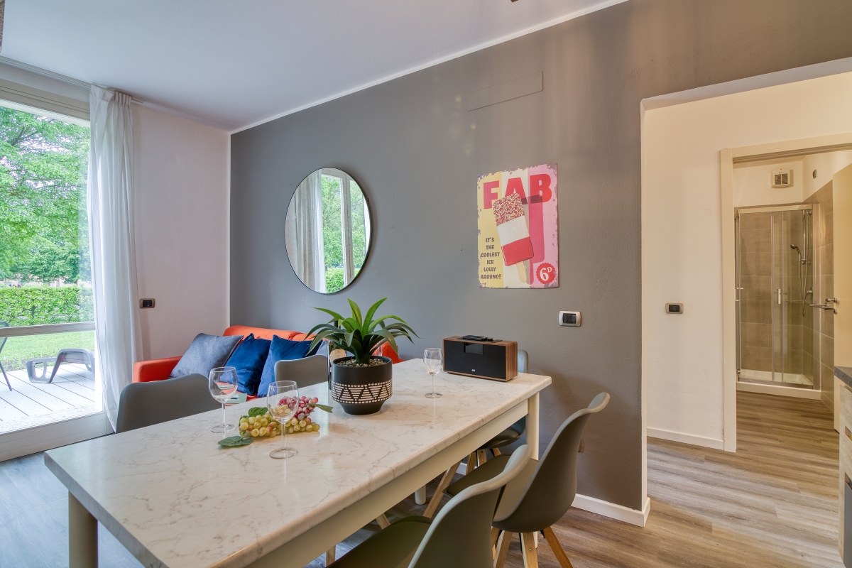 Located in Porlezza on Lake Lugano, the villa apartment is situated within the park of Porto Letizia. The family-friendly resort enjoys a lakeside public park with meandering footpaths and a communal beach with SUP and watersport hire, 2 children’s play areas and the main Palazzo building with on-site reception, a stylish café bar, Panama Italian restaurant and more.