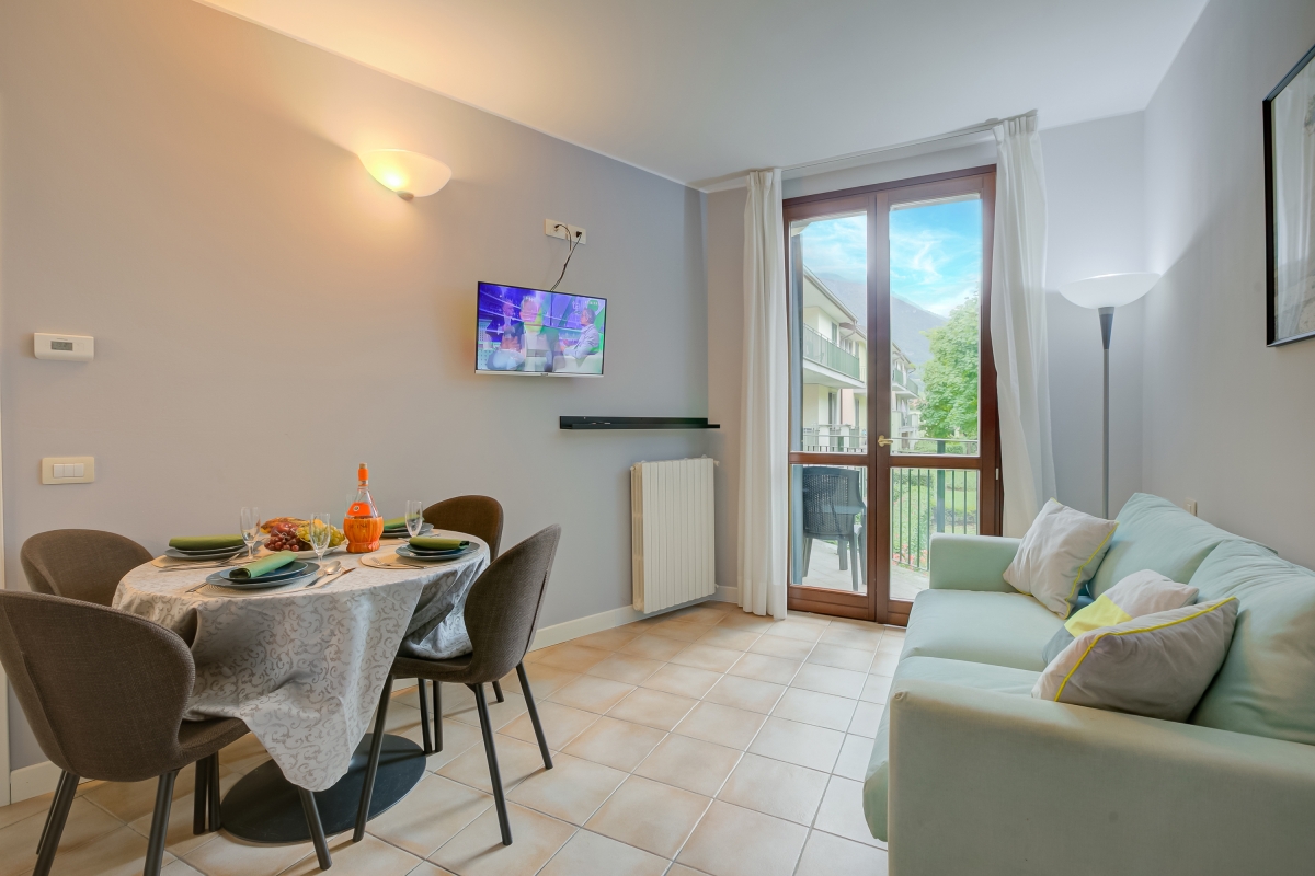 Located in Porlezza on Lake Lugano, the apartment is situated within the park of Porto Letizia. The family-friendly resort enjoys a lakeside public park with meandering footpaths and a communal beach with SUP and watersport hire, 2 children’s play areas and the main Palazzo building with on-site reception, a stylish café bar, Panama Italian restaurant and more.