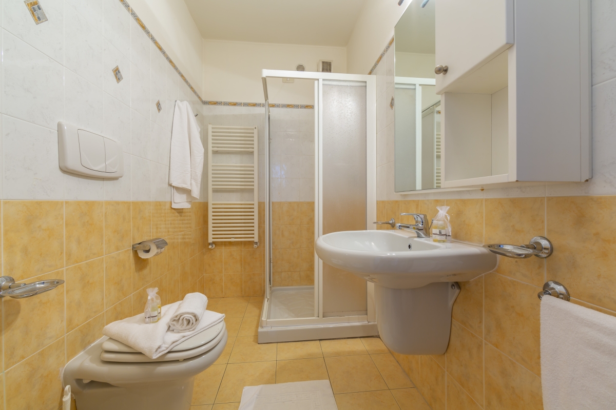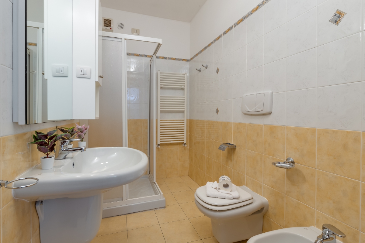 The apartment offers accommodation for 8 guests with a private garden or balcony to enjoy at leisure. A welcoming living room with a double sofa bed and a fully equipped kitchen with diner features in the common area inside the apartment. The sleeping accommodation is modern, practical and flexible. There are 3 double bedrooms with either a double bed or 2 single beds. The convenient accommodation is complemented by a bathroom with a shower and WC and bidet.