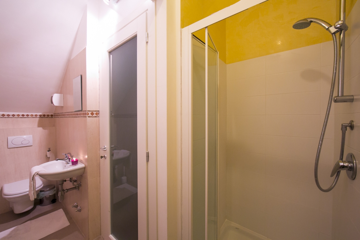 To the second floor a spacious double bedroom with two single beds which can be put together if desired features as well as a spacious modern bathroom with power shower, washbasin, WC and bidet.