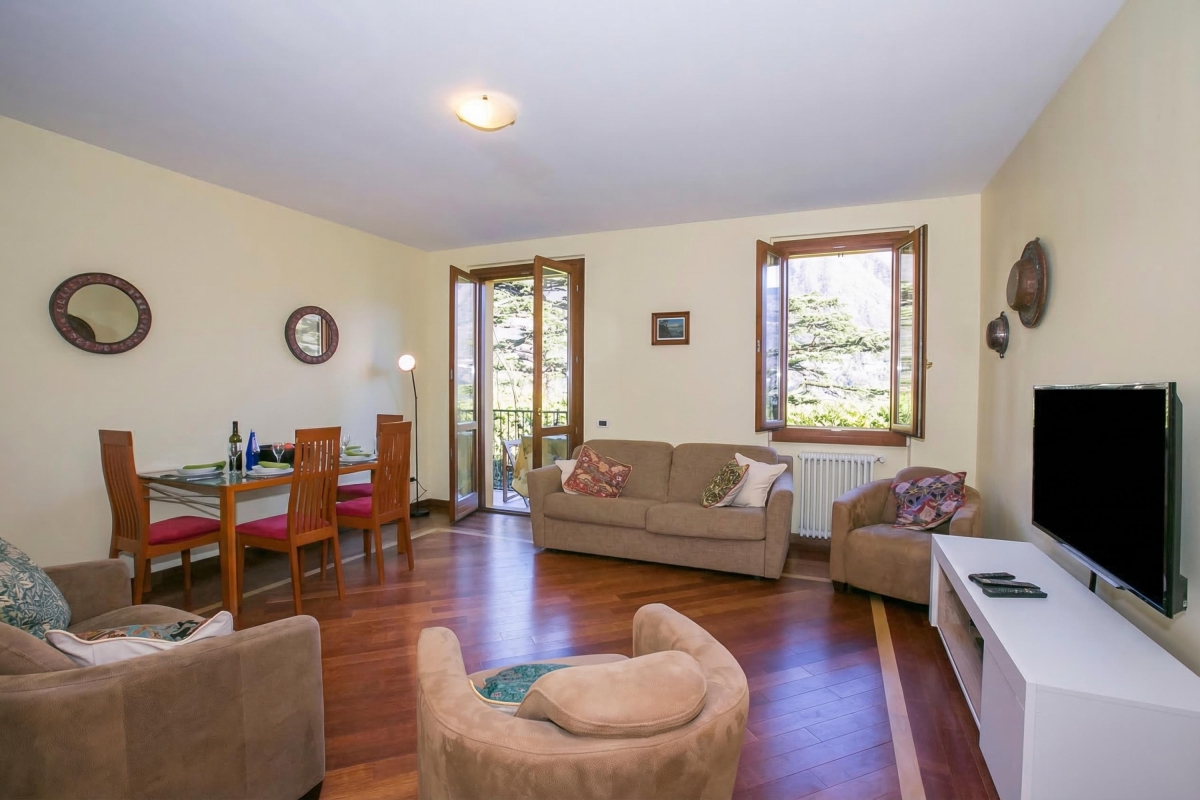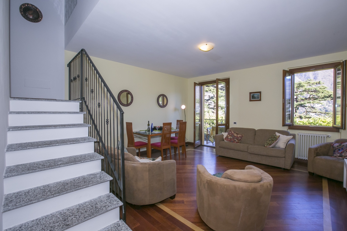 The spacious and versatile apartment conveniently benefits from lift access and safe parking nearby the residence, with the local amenities of Laglio right on the doorstep.