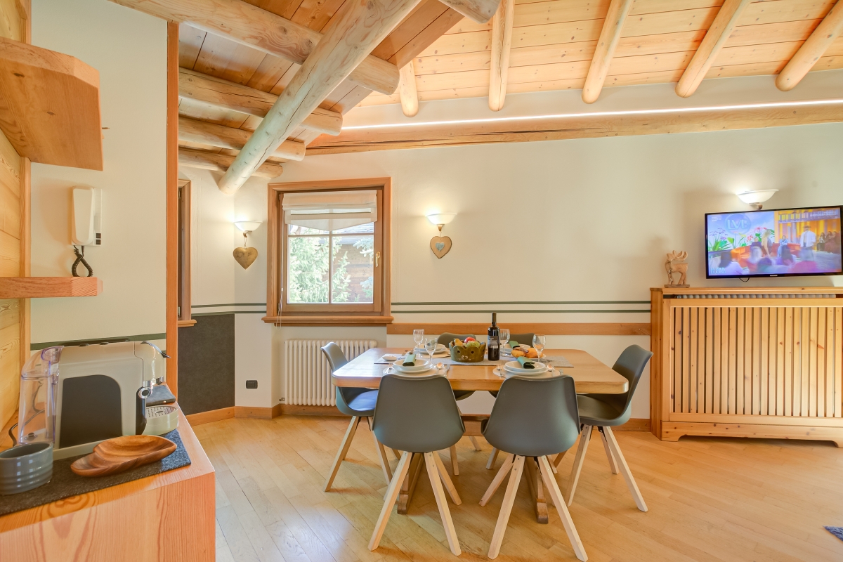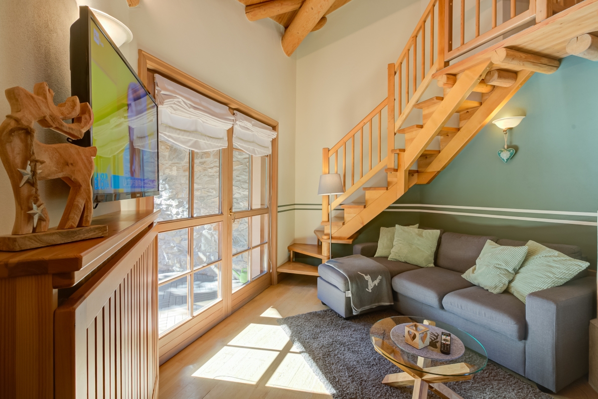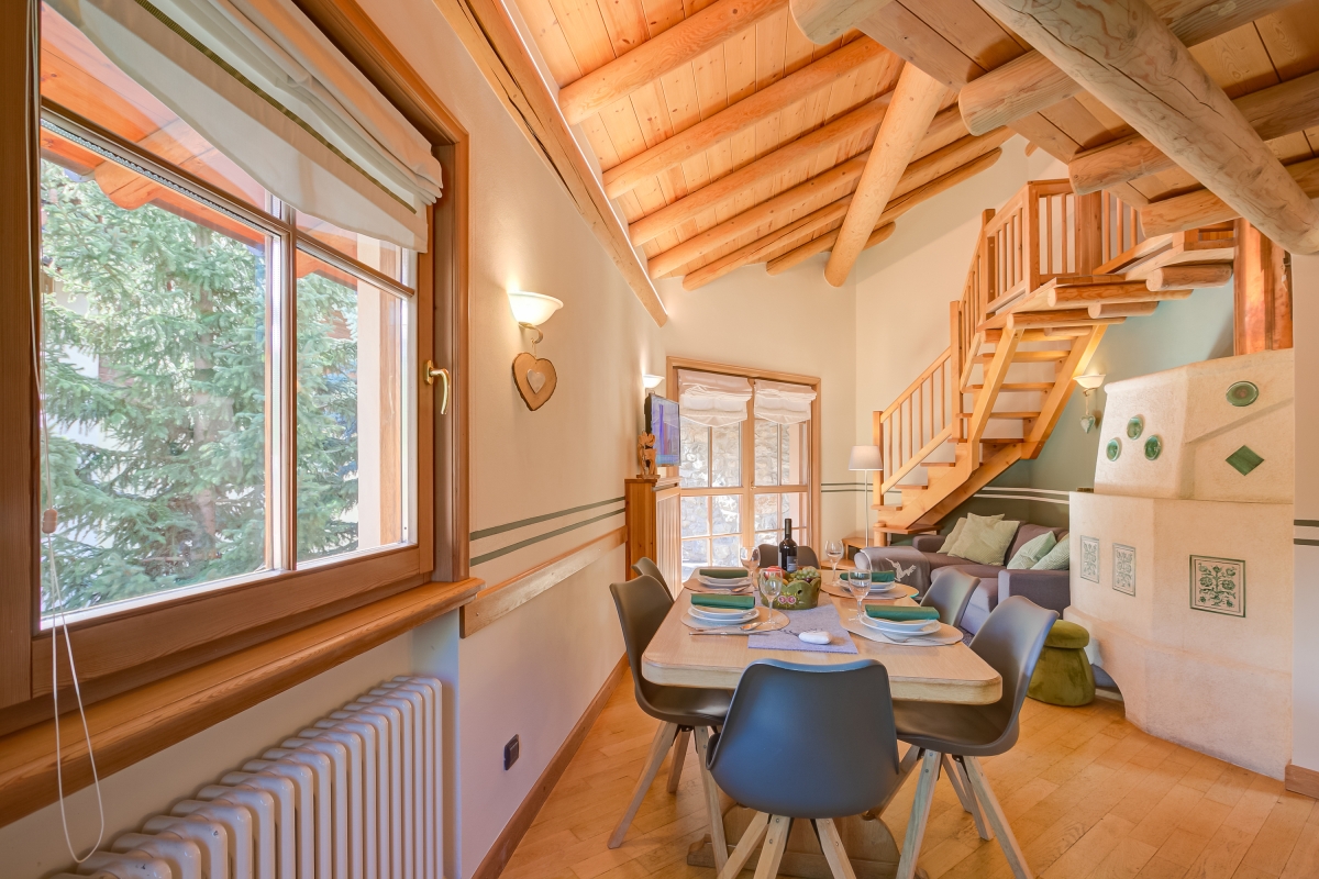 Enjoy this beautiful duplex ski chalet apartment which boasts beautiful pine wood fittings and high beamed ceilings to create a welcoming and sumptuous retreat from the slopes!