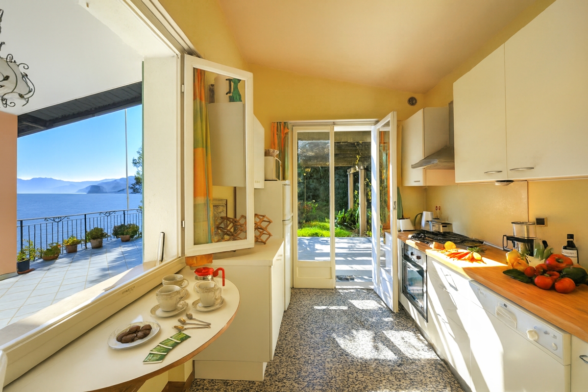 A bright and sunny separate kitchen is fully equipped with all the desired appliances including a cooker hob, oven, kettle, american style coffee machine and toaster with a lake view breakfast table to enjoy a relaxed morning coffee and brioche.